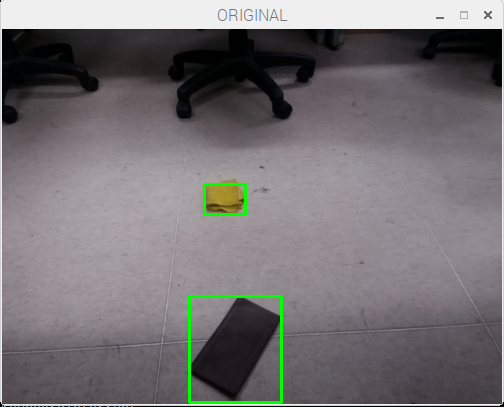 This is the picture of the detection while the left picture is the raw image seen by the camera and the background subtracted image is on the right. Notice that when a trash stay still for enough of time, it is considered as the background itself. Solving this problem require a initial picture of a clean background to do difference alongside by the subtractor.